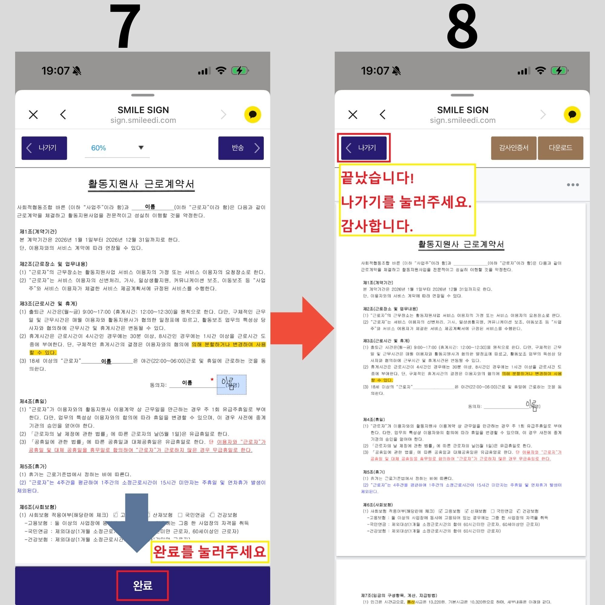 ※※작성 방법 설명 화면이니 참고하시고 >>카카오톡 SmileSign<<에서 서명해주세요.※※